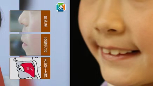 正常鼻呼吸:孩子在安静状态下,舌头自然贴合上颚,绝大部分气流通过鼻腔进行呼吸。鼻呼吸能带动面部肌肉正常发力,支撑颌骨正常发育。