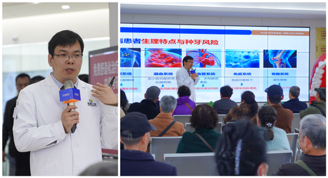 活动伊始,新桥口腔内科医生王军景从肾病患者生理特点出发,结合十余年临床经验,向现场观众系统讲解了肾病患者种牙前必须完成的四大核心评估:肾功能是否足以支持药物代谢,凝血功能能否控制术中出血风险,血压是否长期稳定,血糖(如合并糖尿病)是否满足骨愈合条件。